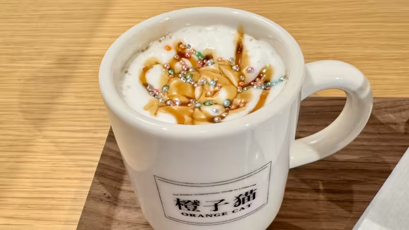 早大生が運営するカフェ “橙子猫 Orange Cat” にて,如月祭仕様のアップルシナモンラテが登場! お店の場所は,国際文学館正面玄関から入って木のトンネルを降り,右に曲がって奥に進んだところです。