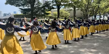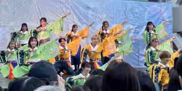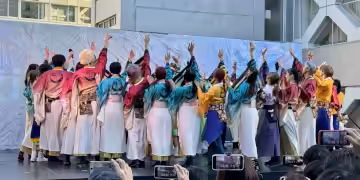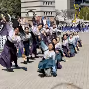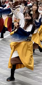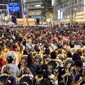 秋遠征第二陣! 大阪市内各所で開催された “こいや祭り” に東京花火さんが出演しました。天つかさ代の OBOG の方も限定参加し,彩の輪を踊りました。