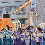 日本丸メモリアルパークで開催された横浜舞踏会を見に行きました。ランドマークタワーのお膝下という最高のロケーションに,桜満開の春日和という最高のタイミングでした。纏のお二人が初見の総踊り曲を頑張って踊っていました。