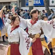 なんとなんと東京花火アメリカ初上陸となります。最後の Grand Parade の長さは一般的なよさこい祭りの数倍の 1.6 km! ぞっこんめでた(ぞっこん町田 ’98 さんと七福よさこい連祝禧さんの合同チーム)さんや,おどりんちゅさん等も遠征に参加したようです。