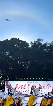 一枚目の写真について補足: 初日の原宿口での演舞中に,太陽にハロがかかって空に本物の “彩の輪” ができ,たまたま通りがかった飛行機がその輪の中を飛ぶ,というミラクルな出来事がありました。