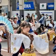 なんとなんと東京花火アメリカ初上陸となります。最後の Grand Parade の長さは一般的なよさこい祭りの数倍の 1.6 km! ぞっこんめでた(ぞっこん町田 ’98 さんと七福よさこい連祝禧さんの合同チーム)さんや,おどりんちゅさん等も遠征に参加したようです。
